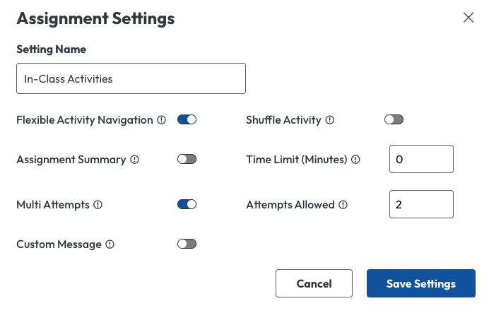Preset Settings for Graded Assignments